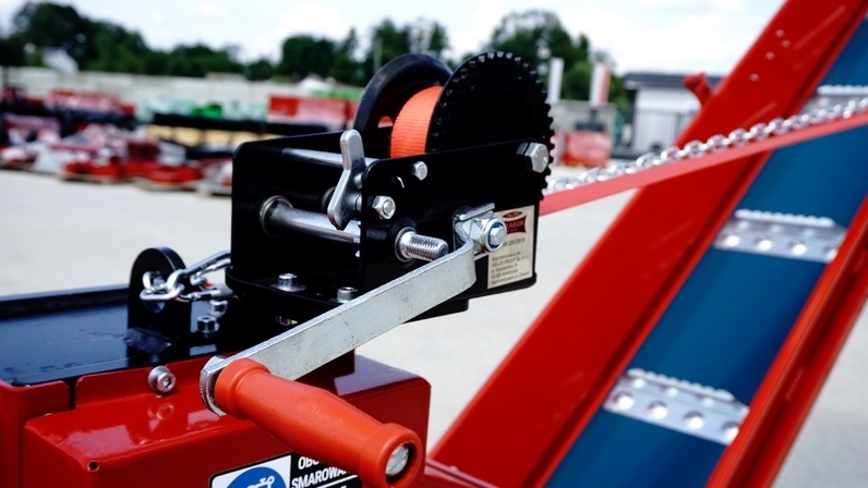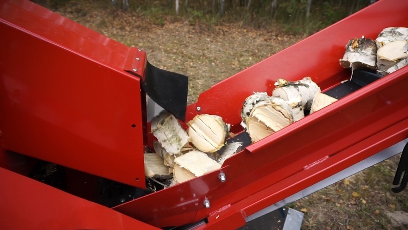 Efektywność pracy przy rozdrabnianiu gałęzi i drewna zwiększa przenośnik taśmowy o długości 3 metrów i szerokości 25 centymetrów. Dzięki niemu możliwe jest szybkie i łatwe przesuwanie rozdrobnionych gałęzi do wyznaczonego miejsca.