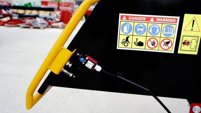 Użytkownik rębaka może czuć się bezpieczny! Rębak wyposażono w wyłącznik bezpieczeństwa otaczający lej wrzutowy. Minimalizuje on ryzyko wypadków podczas pracy.