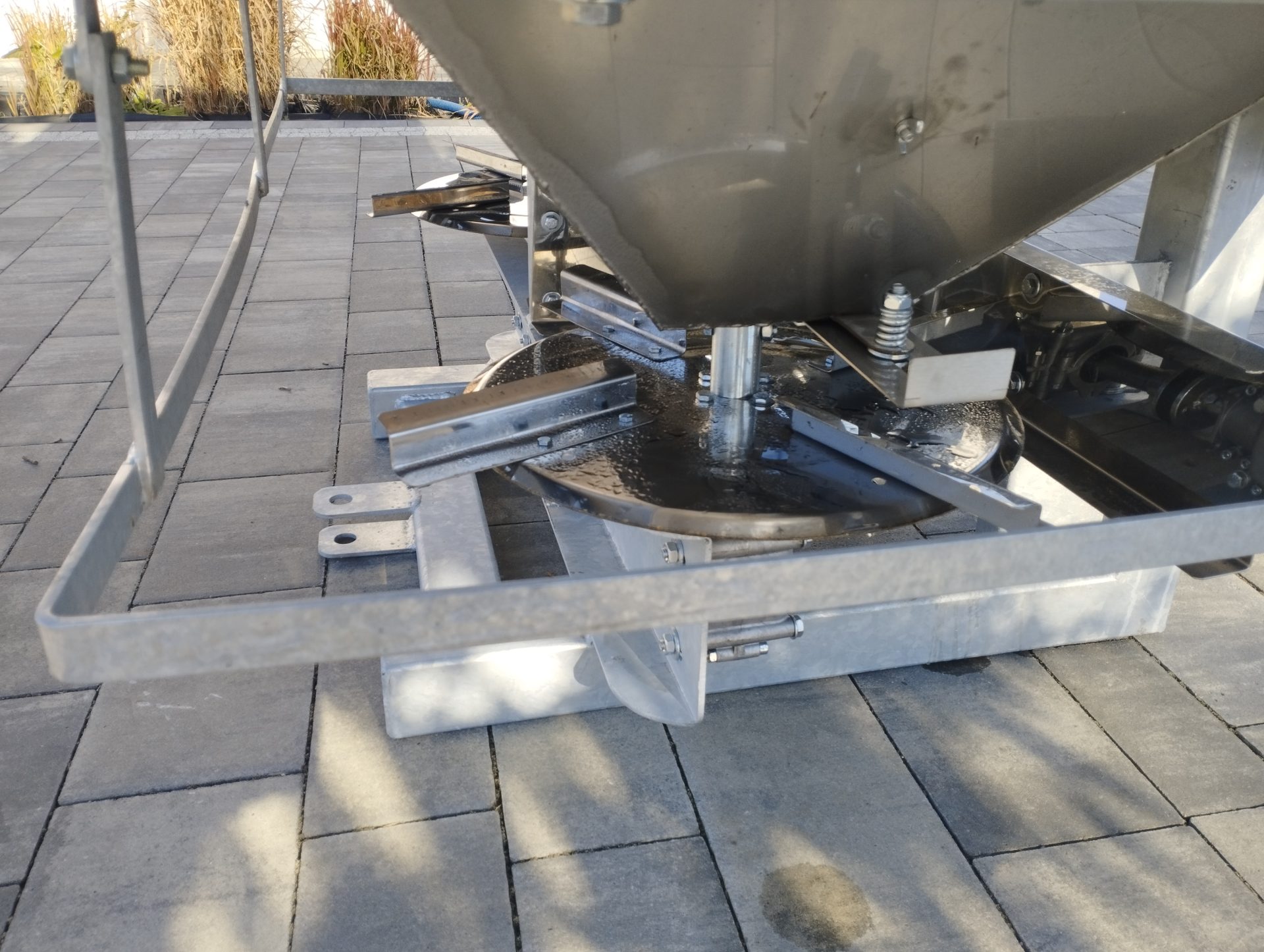 Praca z tym sprzętem możliwa jest w każdych warunkach terenowych. Zastosowanie solidnej ramy oraz kosza zasypowego z blachy o grubości 2 minimetrów jest również ważnym czynnikiem, który wpływa na mocną konstrukcję. Płynność pracy urządzenia zapewnia Polska przekładnia połączona z elastycznymi sprzęgłami.
