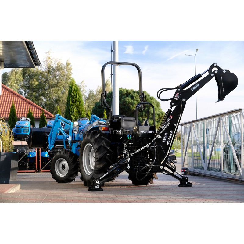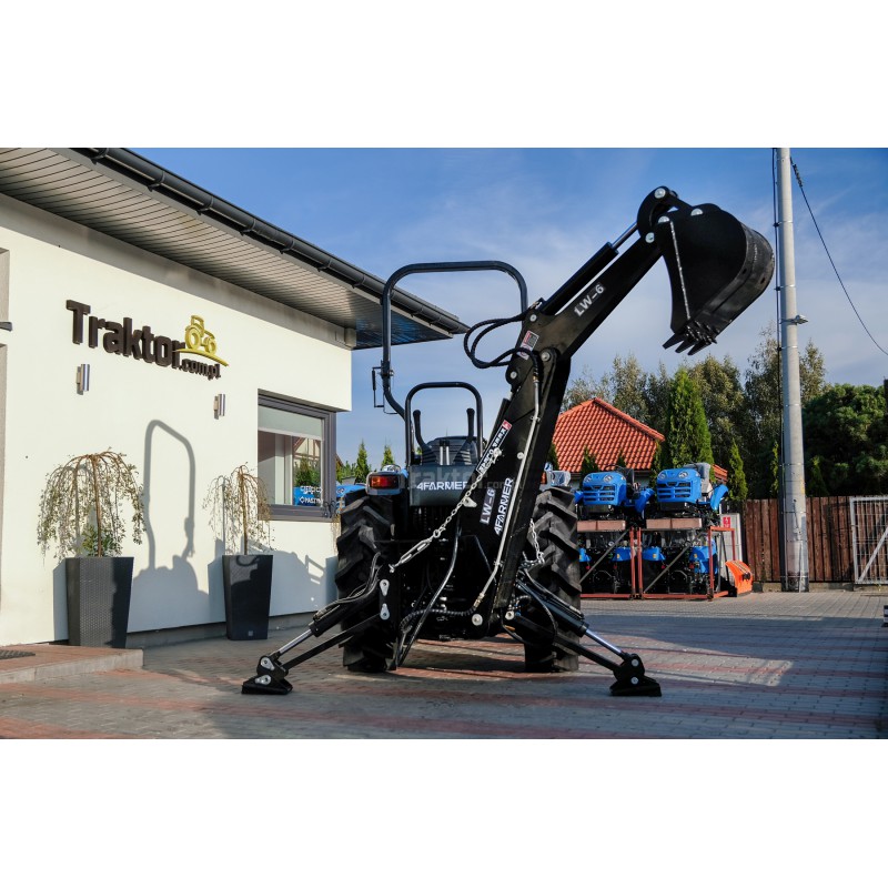 - Koparka LW 6 4farmer – wyposażona w własną pompę hydrauliczną, doskonała do robót ziemnych w gospodarstwach rolnych i firmach. Możliwość kopania do głębokości 200 cm przy mocy ciągnika min. 20 KM.