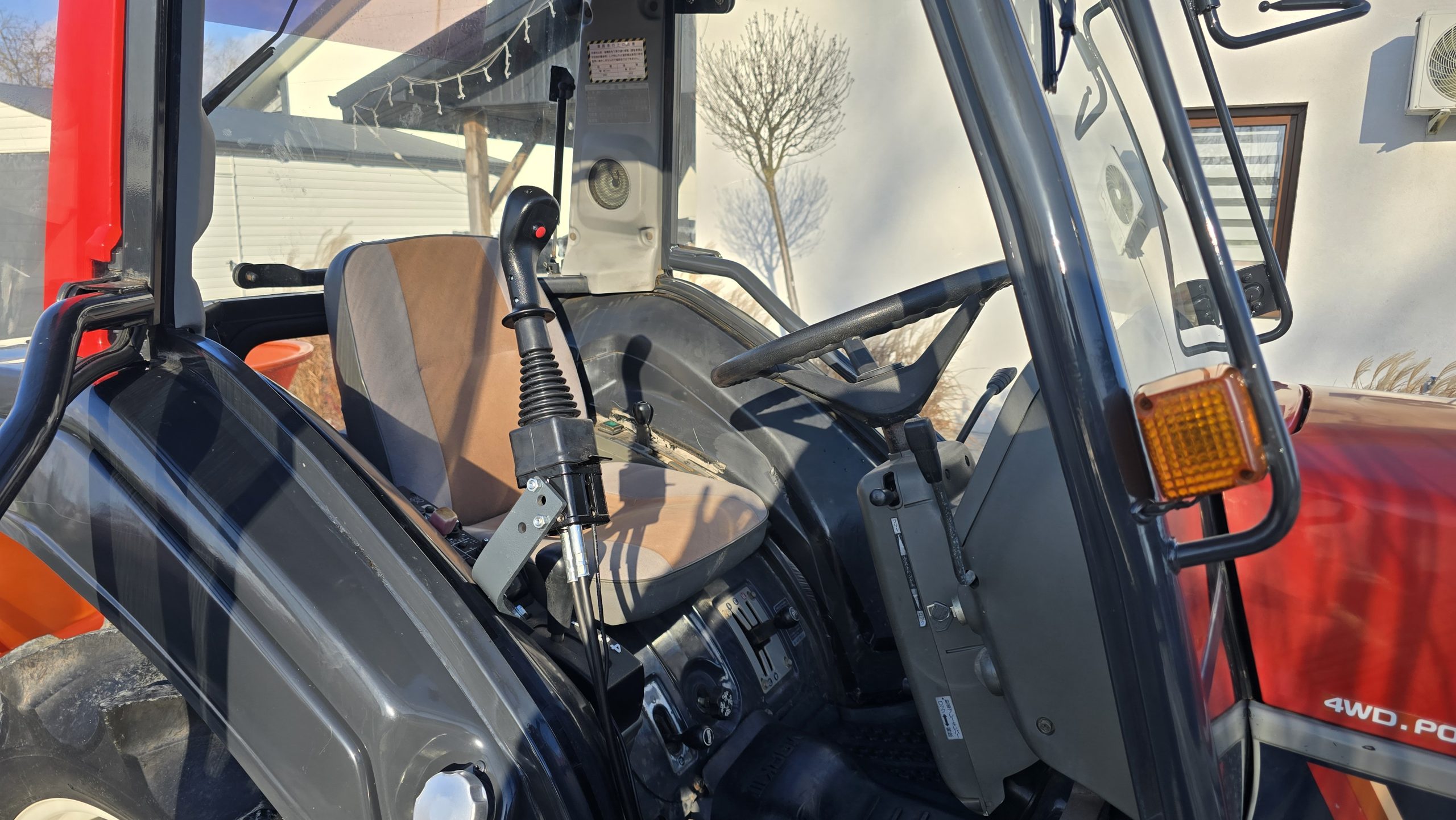 Ciągnik posiada napęd 4×4, ogrzewaną kabinę oraz komplet nowego osprzętu zamontowanego w tym sezonie: