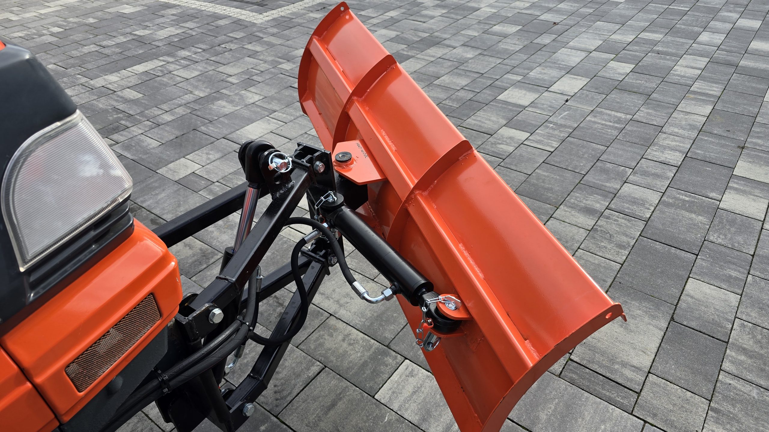 Maszyna została wyposażona w nowy pług do śniegu o szerokości 1,5 m, sterowany hydraulicznie za pomocą joysticka w kabinie, co umożliwia precyzyjne ustawienie kąta pracy bez wychodzenia z ciągnika. Dodatkowo w zestawie znajduje się piaskarko–solarka, dzięki czemu ciągnik tworzy kompletny zestaw zimowy, gotowy do odśnieżania i posypywania dróg, placów czy parkingów.