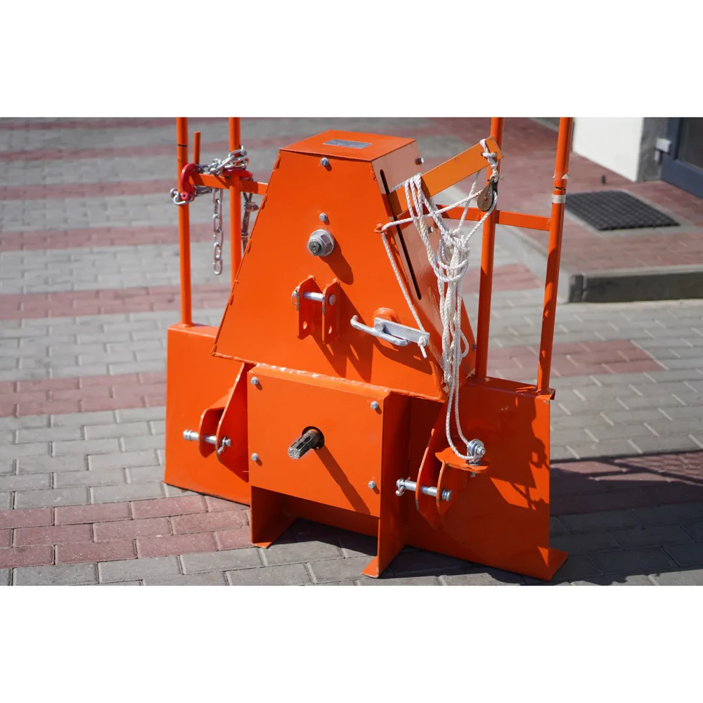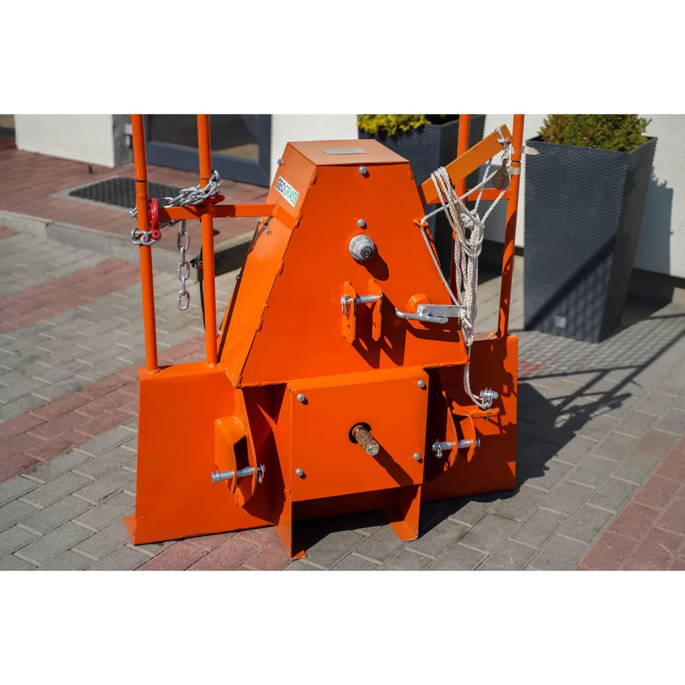 Wyciągarka do drewna posiada konstrukcję, która opiera się na trzypunktowym układzie zawieszenia KAT I. Może, więc być w łatwy sposób zamontowana na ciągniku, a także w wygodny sposób użytkowana. Solidna konstrukcja oraz wsparcie napędu WOM sprawia, że narzędzie jest niezawodne. Może być stosowane między innymi przy transporcie konarów drzewnych, ciężkich materiałów budowlanych, a także palet z deskami.