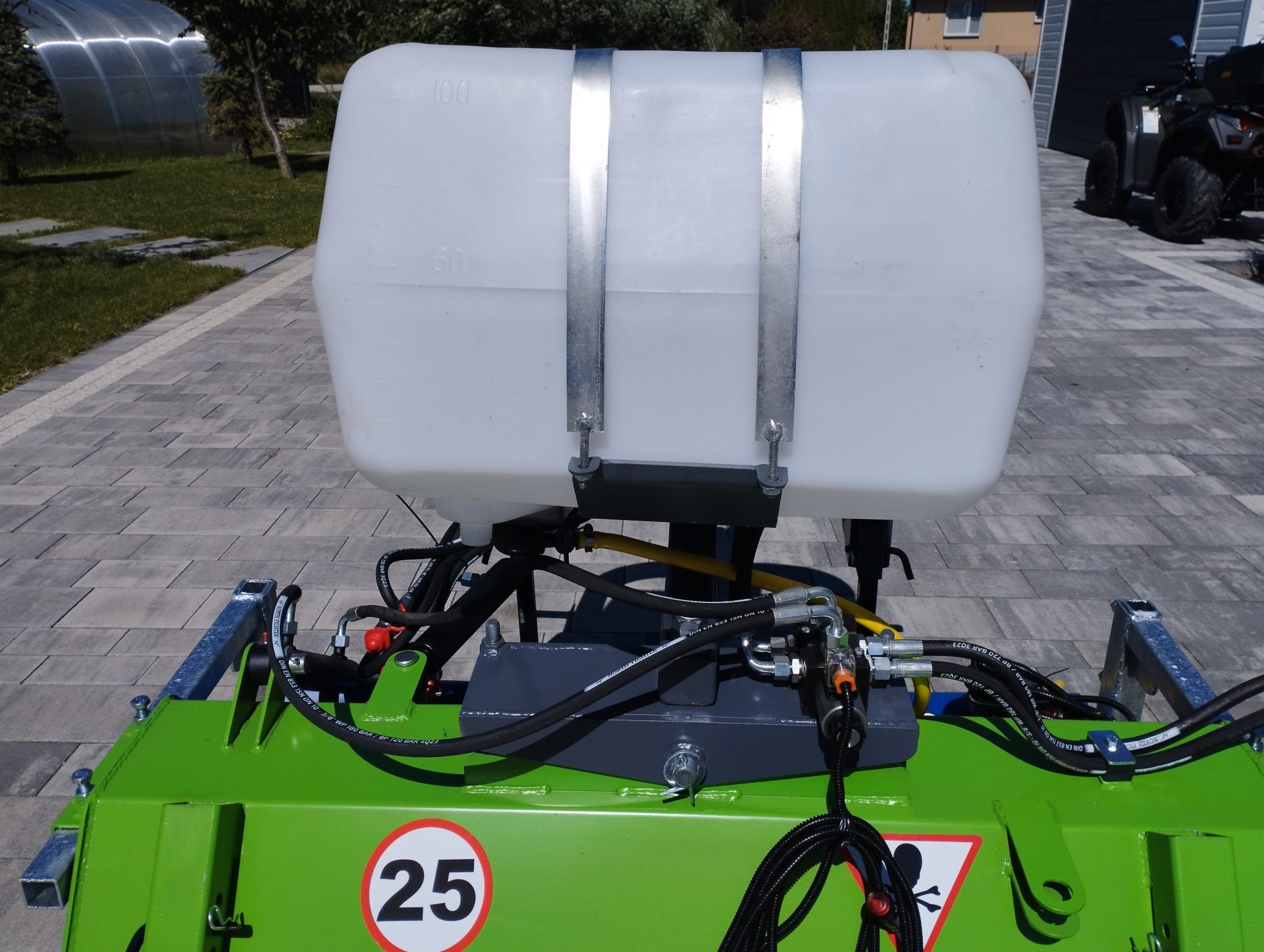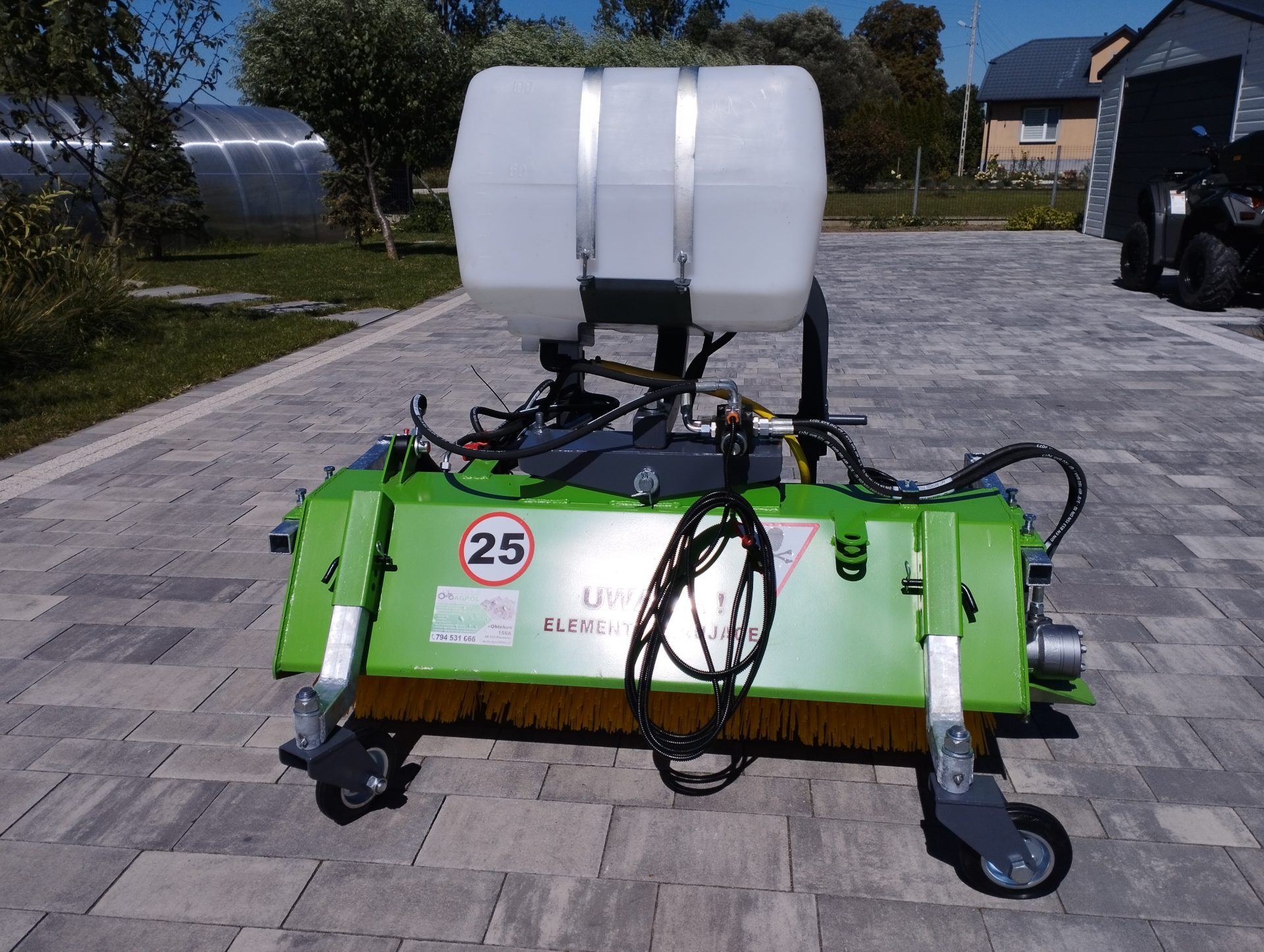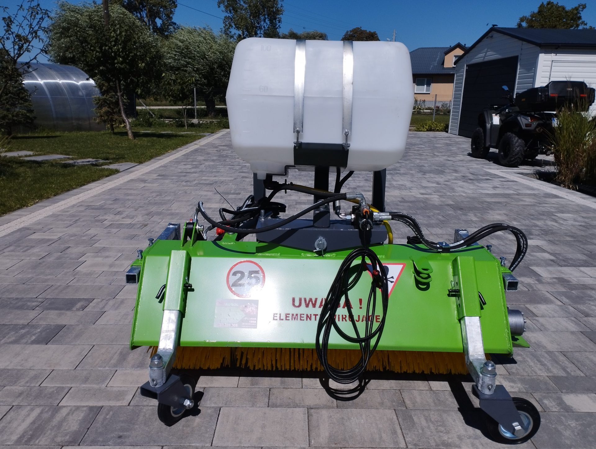 - Zraszacz wodą: Zraszacz wodny zamontowany na zamiatarce minimalizuje unoszenie się kurzu podczas pracy, co jest szczególnie ważne na suchych i pylistych nawierzchniach. Dzięki temu zanieczyszczenia są skuteczniej usuwane, a otoczenie pracy pozostaje czystsze.
